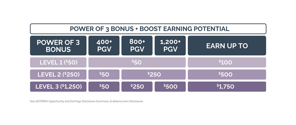 The Power of 3 boost is designed to reward you for growing your team by doubling your $50 or $250 bonus.