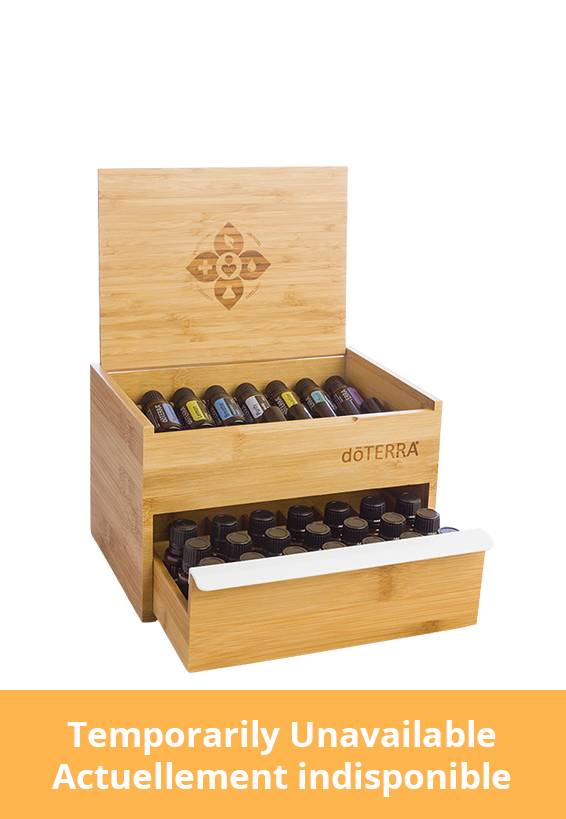Store your essential oils in style with the double-drawer doTERRA Deluxe Bamboo Box. Its modern aesthetic and smooth-sliding drawers give you the best of both design and functionality. You can display your collection in any space and access up to 88 of your favourite oils with ease. The top rack holds eight 15 mL plus ten 5 mL/10 mL bottles, while each of the two bottom drawers can hold up to 35 oils. Whether it’s for the holidays or just because, this top-quality Bamboo Box makes the perfect gift for essential oil enthusiasts and organizers alike.