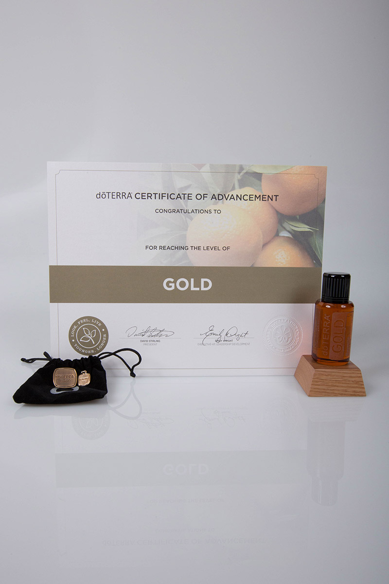 신규 골드 달성자에게는 골드 직급 인증서와 핀, 참(Charm)을 드립니다. 골드 트로피는 코리아 컨벤션 레커니션 인증 자격을 갖춘 회원이 코리아 컨벤션 갈라 파티에 참석할 경우에 수여됩니다.