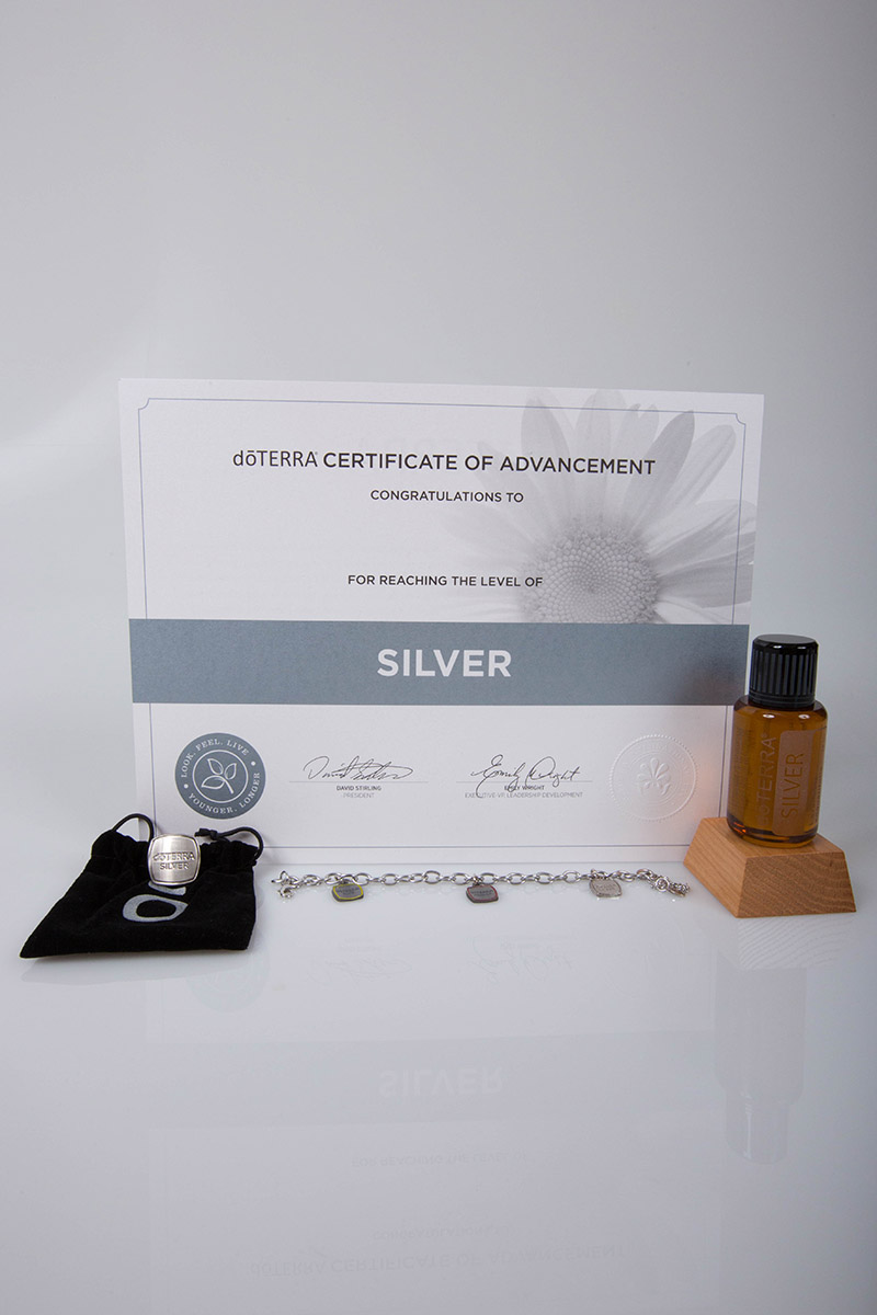 신규 실버 달성자에게는 실버 직급 인증서와 핀, 그리고 엘리트, 프리미어, 실버 직급 참(Charm)이 포함된 팔찌를 드립니다. 실버 트로피는 코리아 컨벤션 레커니션 인증 자격을 갖춘 회원이 코리아 컨벤션 갈라 파티에 참석할 경우에 수여됩니다.