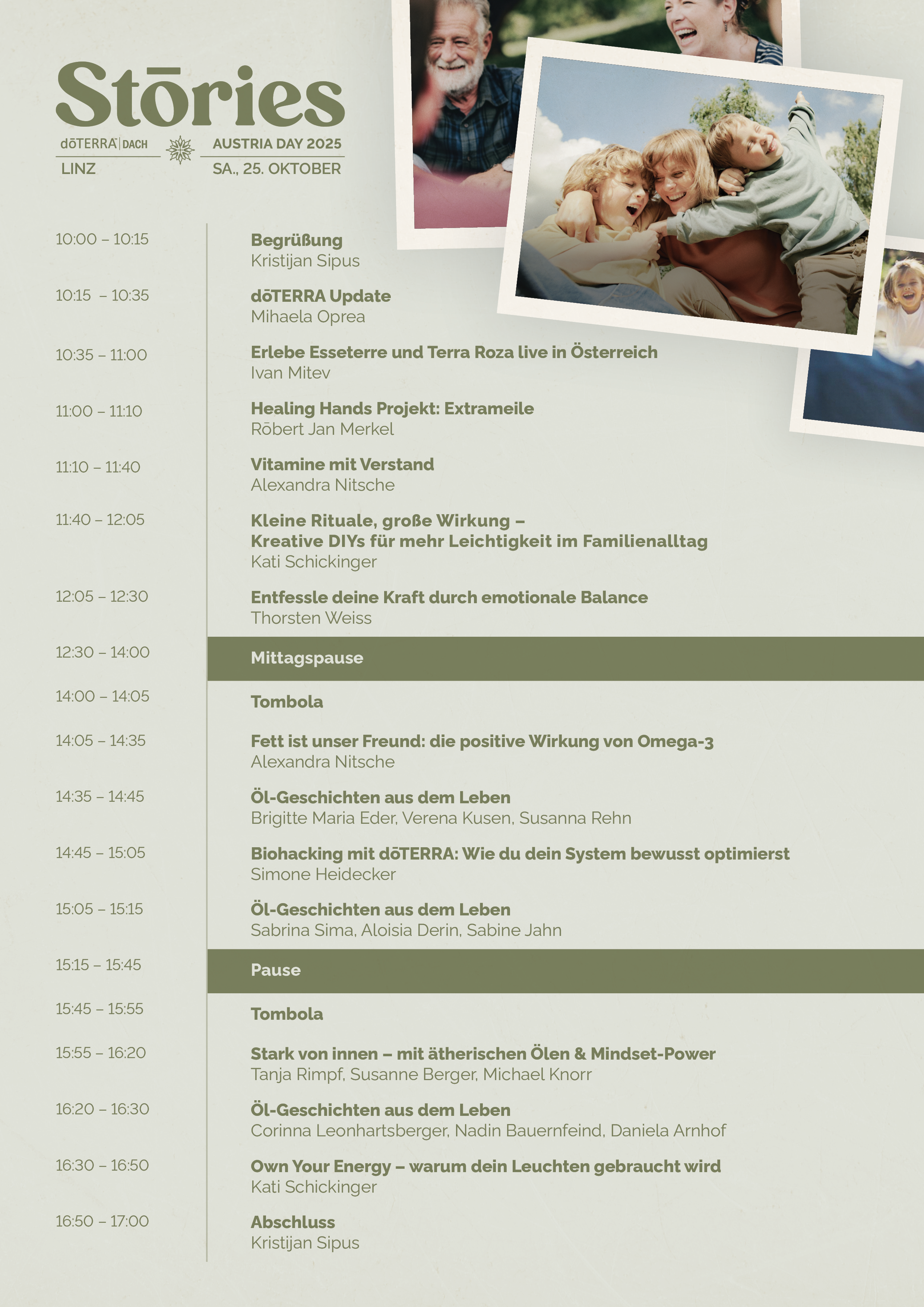 folgenden Speaker beim dōTERRA Austria Day 2025