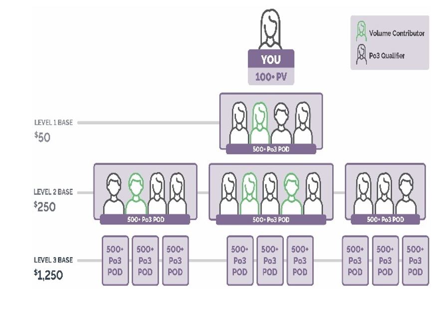 Pod: A term used in the Power of Three Bonus. A Pod consists of 500 or more PV from LRP orders in a monthly commission period sold to Wellness Advocates and Wholesale Customers on the Wellness Advocate’s first sponsor level, excluding enrollment and reactivation orders. Pods do not include products redeemed with Product Credit.
