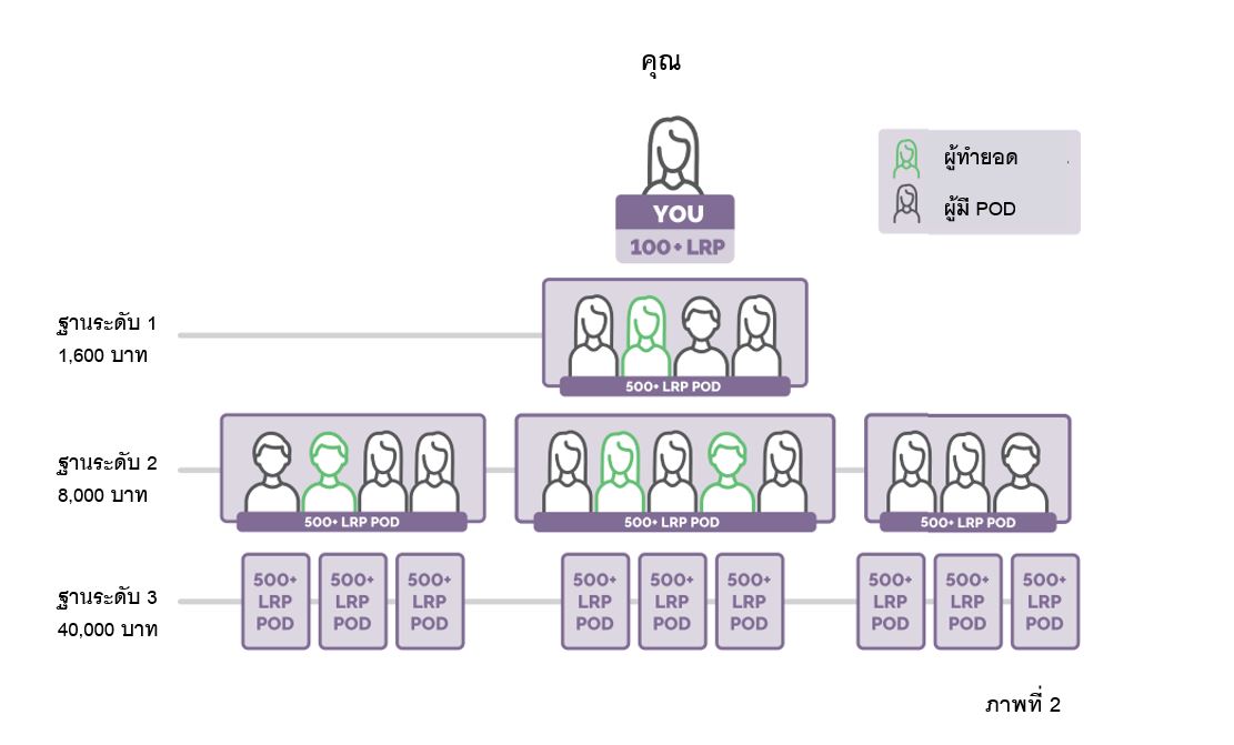 พาวเวอร์ออฟทรีโบนัสระดับชั้นที่ 2 จำนวน 8,000 บาท ที่ปรึกษาด้านสุขภาพจะต้องมีคุณสมบัติครบตามข้อกำหนดสำหรับพาวเวอร์ออฟทรีระดับชั้นที่ 1 ก่อน และที่ปรึกษาด้านสุขภาพจะต้องมีตำแหน่งเอลีท (Elite) ขึ้นไป และมีผู้ที่ท่านเป็นผู้สนับสนุนติดตัวจำนวน 3 รหัสที่ครบคุณสมบัติพอด(POD) เพื่อมีสิทธิได้รับพาวเวอร์ออฟทรีโบนัสระดับชั้นที่ 2 โดยผู้ที่ท่านเป็นผู้สนับสนุนไม่จำเป็นจะต้องได้รับพาวเวอร์ออฟทรีโบนัส ดูภาพที่ 2