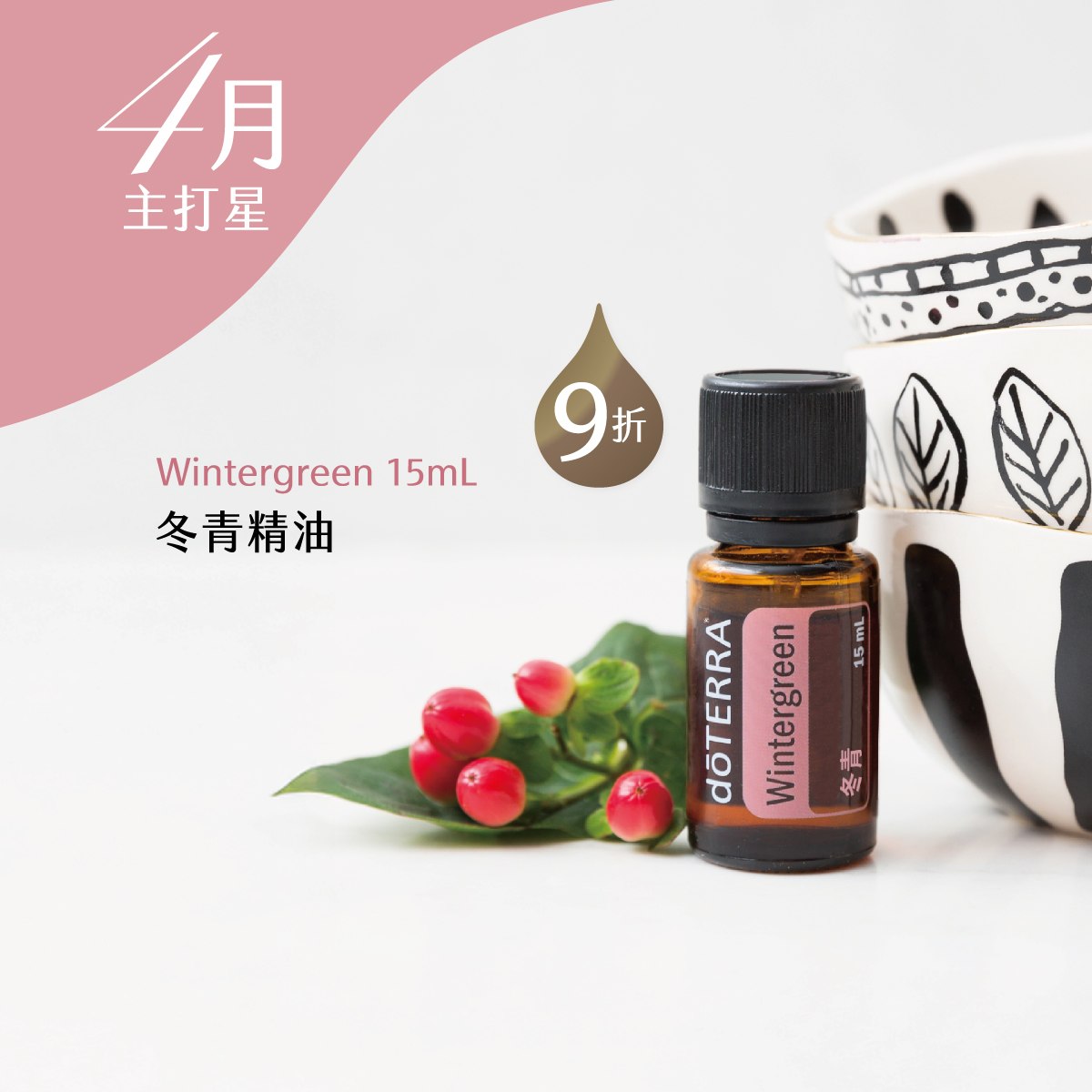 - 於熱水加入1-2滴冬青精油,享受舒緩放鬆的沐浴時光。