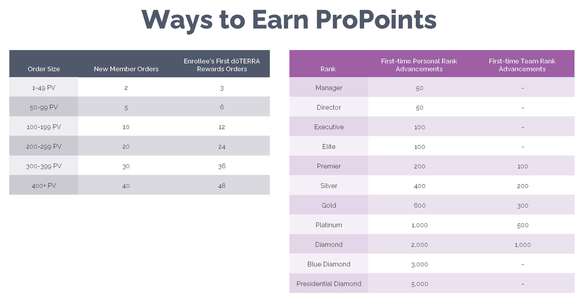 Gana ProPoints por los pedidos de Recompensas realizados por tus inscritos personales durante el primer mes en que se registren en Recompensas doTERRA.